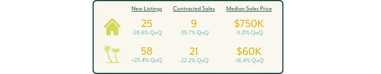 The Eleuthera and Harbour Island housing market eased its pace in Q3, with fewer homes coming to market — yet buyer activity, pricing, and closing strength remained solid, especially in the mid- to high-value segment. Demand didn’t disappear — it simply became more selective, and well-priced listings continued to attract real interest from both Bahamian and international buyers.