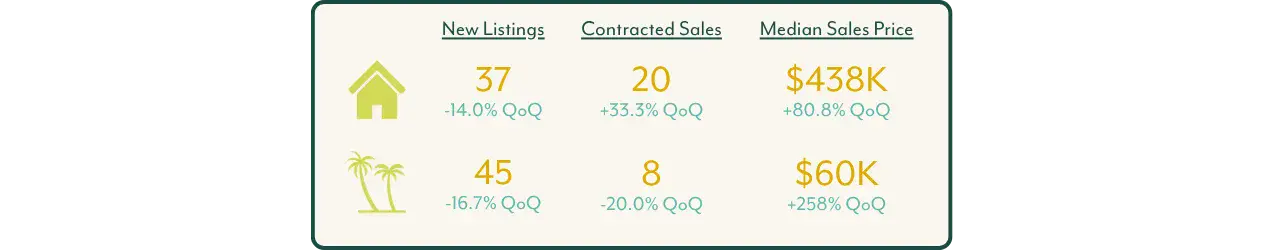 🌴 Land market slowed, with fewer listings and softer demand