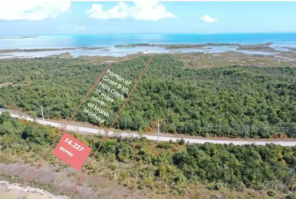 Over 14 acres of elevated land overlooking Hill's Creek, a protected inlet in Central/North Abaco which feeds into the Sea of Abaco. With over 700 feet of naturally protected water frontage the north side of this property is perfect for an array of dock slips or small marina and is also ideal for kayaking and paddleboarding. The property stretches to the south side where the Marls is located, a known area rich with bone fish. The possibilities with this property run the gamut from retail/wholesale to multi-family homes or even a small resort/hotel. Electricity and cable/wifi are at the roadside. This area has excellent well water so it would be advisable to drill wells for one's main water source. Survey markers have just been installed and are highly visible. There is a walking track cut through from the highway. This area is peaceful with stunning views of the surrounding creeks and the Sea of Abaco. It is centrally located - about a 20 minute drive to Marsh Harbour and a 10 minute drive to Treasure Cay.