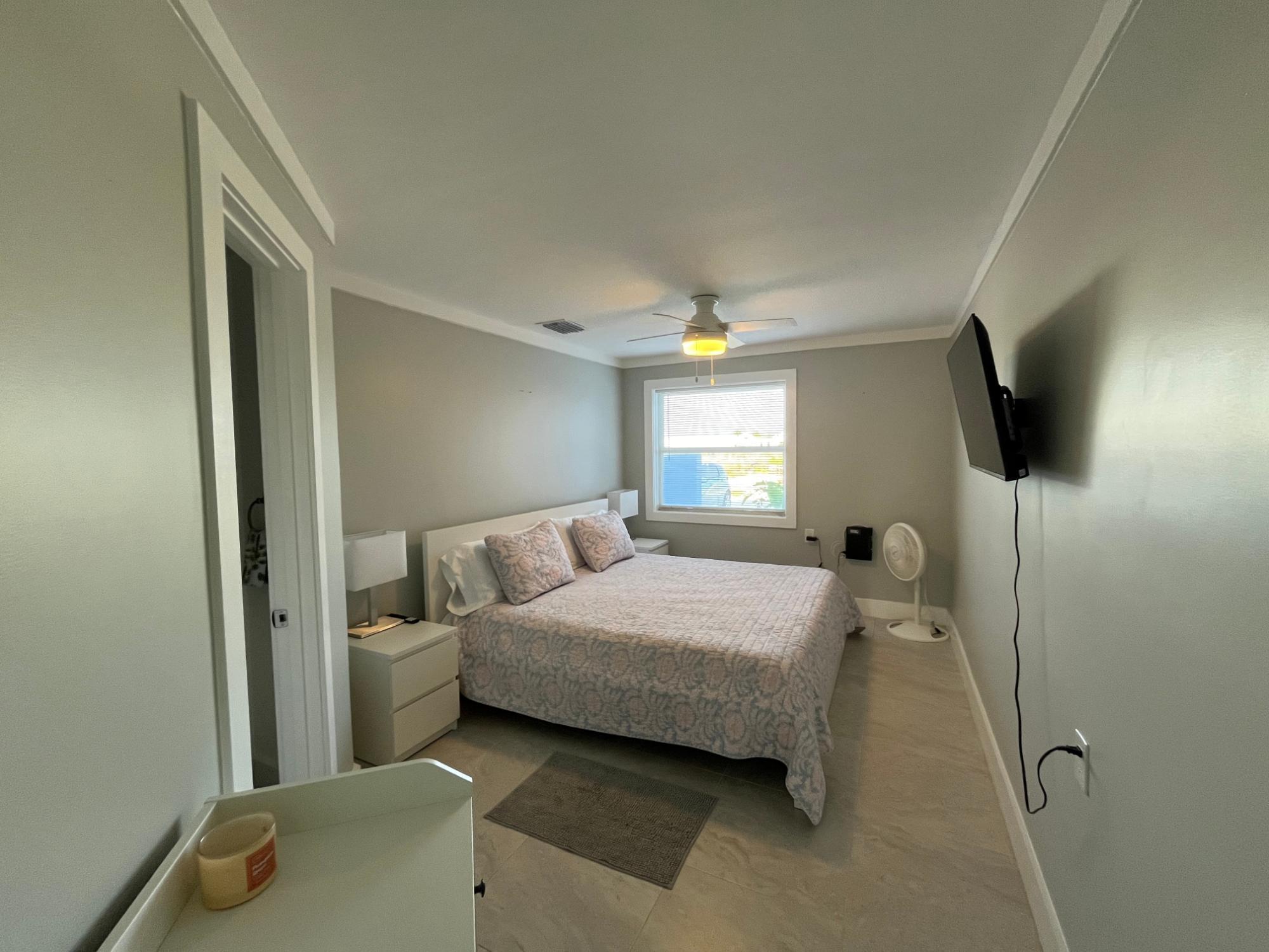 Blue Marlin is a quiet development overlooking Brigantine Bay in beautiful Treasure Cay. It comes with its own dock slip for up to a 30' boat. The ground floor condo has been newly furnished with neutral tones and has a spacious kitchen/living area with dining nook. Its partially covered and partially uncovered patio offers shade, breeze and views of the bay and your boat. Both bathrooms have walk-in showers. This development has one of the larger pools in Treasure Cay and the pool area and gardens are maintained to a high standard. Sundowners while lounging on the poolside adirondacks overlooking Brigantine Bay are a must! Treasure Cay beach is accessed via a public greenway a 5 minute walk away. Larger vessels may be accommodated so please do make further enquiries. Long term leases are preferred.